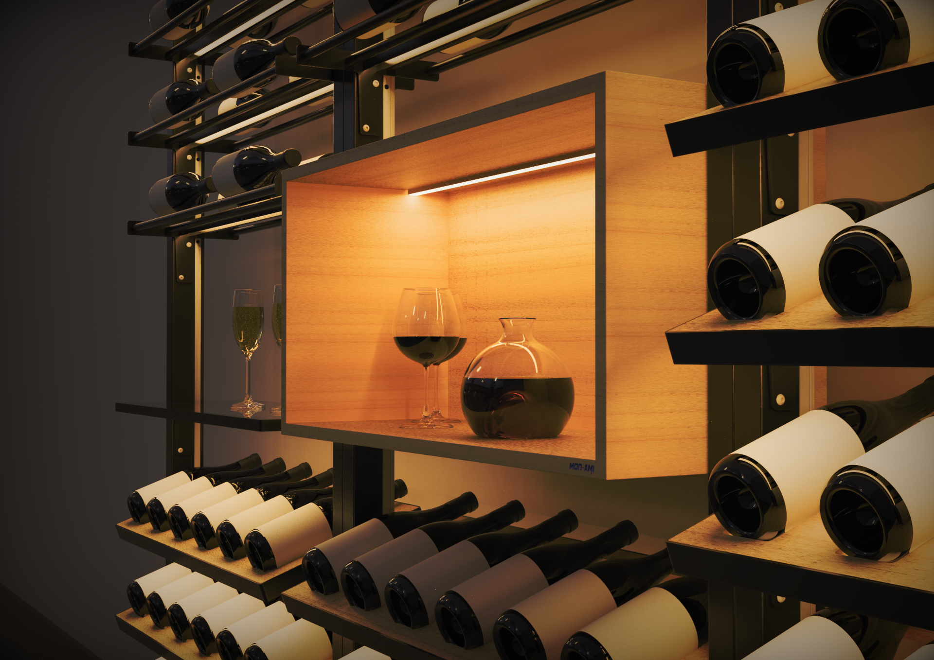 Mon-Ami redefines luxury wine storage by merging modern simplicity with refined elegance. Every detail is thoughtfully designed to create a warm, welcoming atmosphere, transforming wine storage into an artful display. The focus is on creating a seamless, personal experience, where luxury feels accessible and effortlessly integrated. With timeless design and exceptional craftsmanship, Mon-Ami ensures your collection is not just stored, but celebrated.